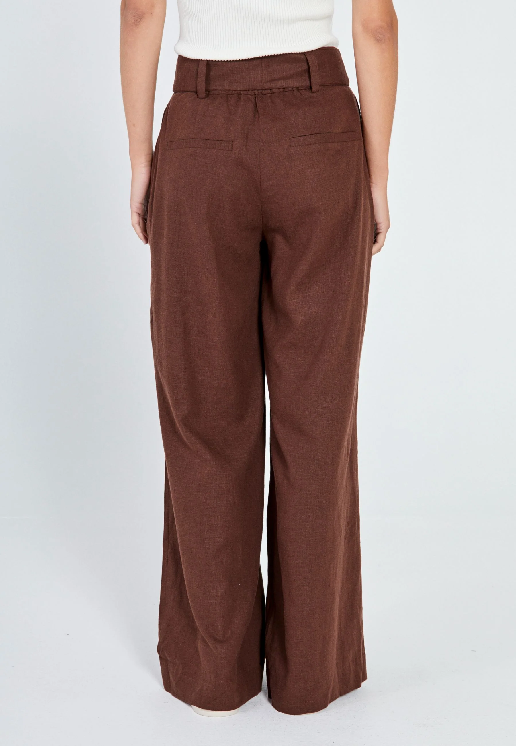 Esma wide pants is a pair of linen mix pants with a wide belt.