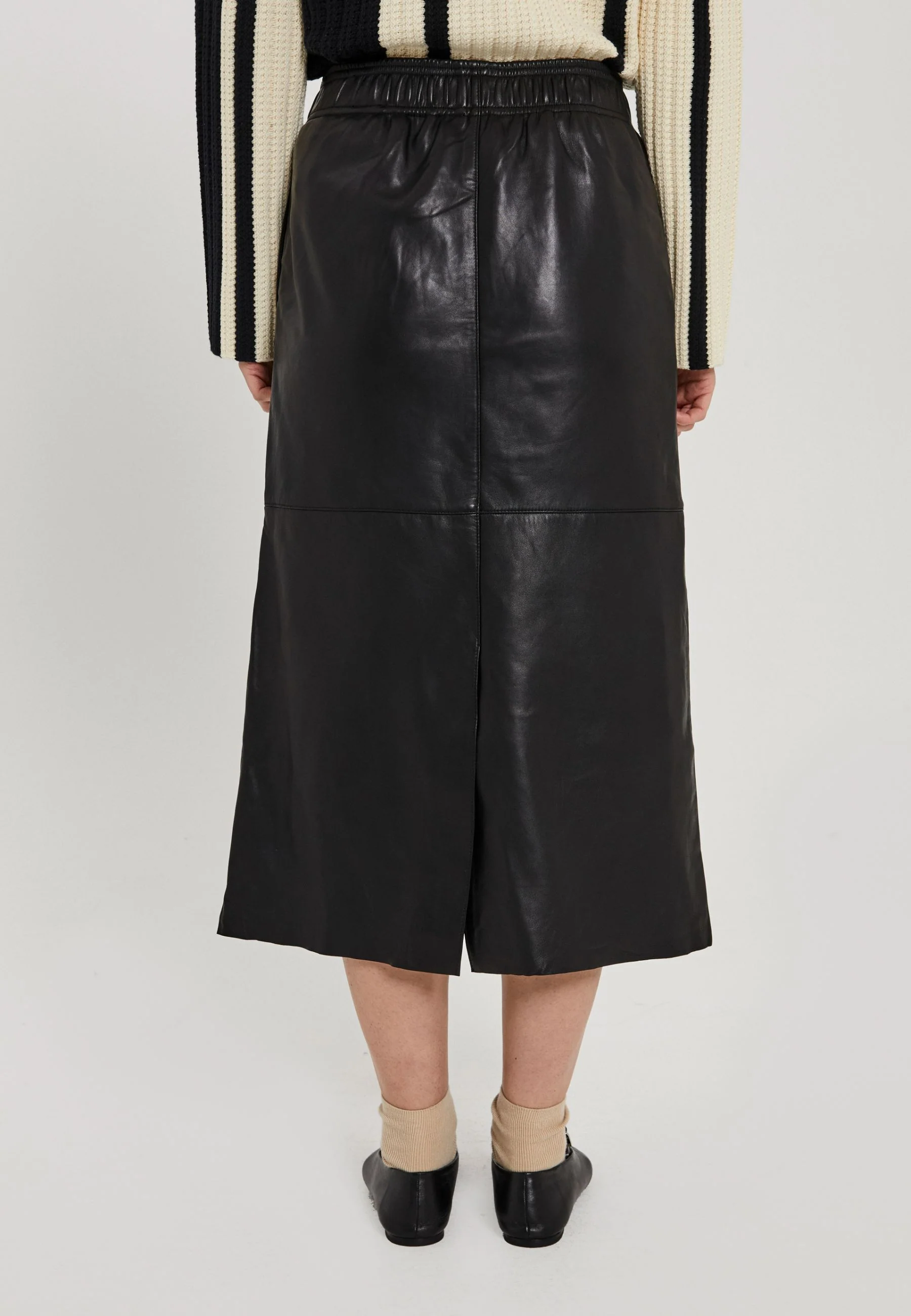 Shelby maxi leather skirt made from 100% lamb leather. A long leather skirt is a stylish and versatile piece of clothing that adds a touch of edgy sophistication to any wardrobe.