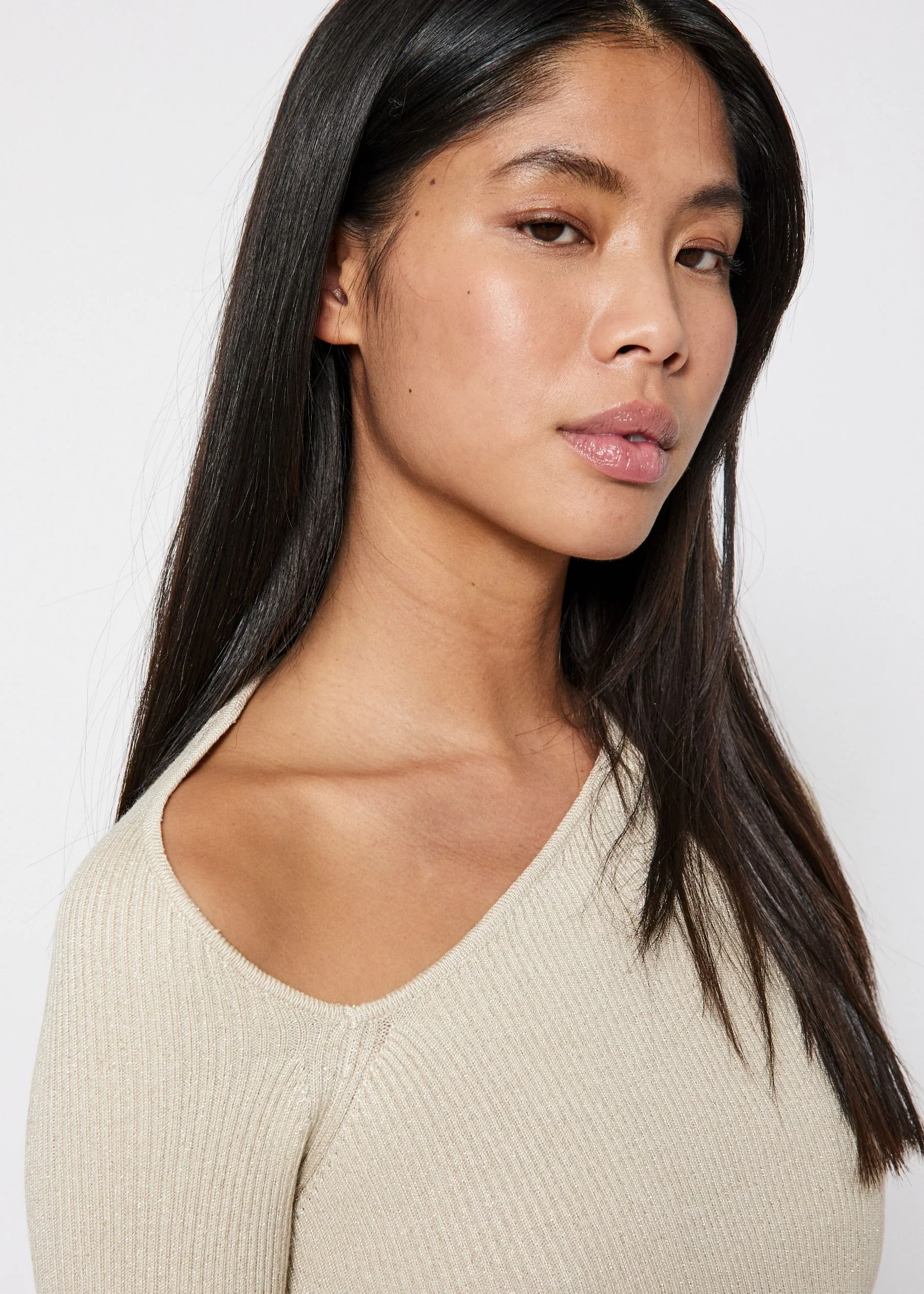 Sherry WS Metallic knit top - Light Beige w. lurex